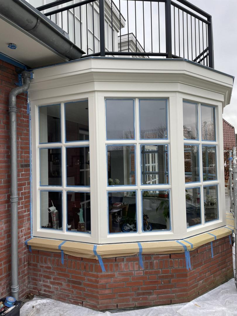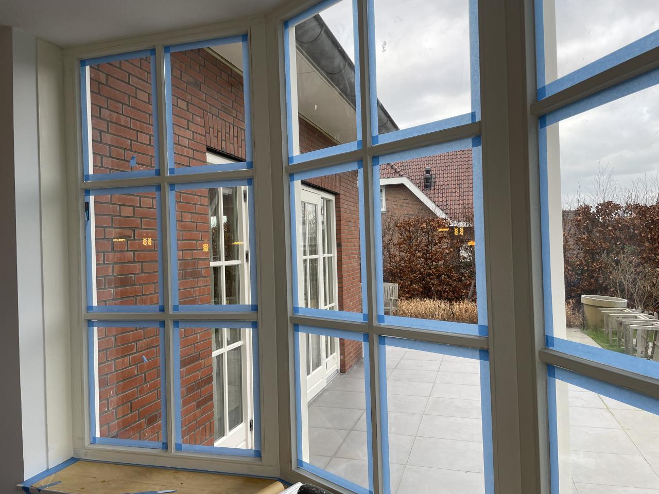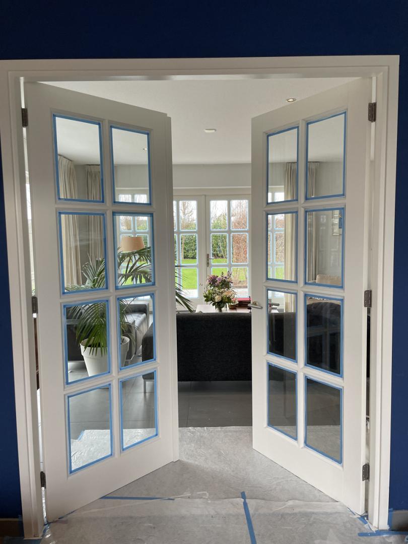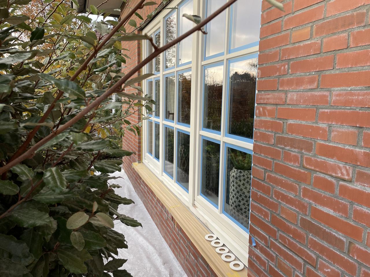 Dankzij nauwkeurig afplakwerk kregen ook de vele kleine ruiten een strakke afwerking. Binnen mocht L&L Schilderwerken het houtwerk voorzien van een nieuwe laklaag met Sikkens Rubbol BL Primer en Rubbol Rezisto, wat zorgt voor een sterke en stijlvolle afwerking. Het resultaat is een perfect onderhouden woning die er weer jarenlang tegenaan kan.