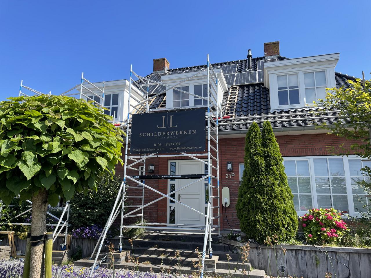 In Rijnsburg voerde L&L Schilderwerken een grondige schilderbeurt uit aan een woning die ondanks haar jonge leeftijd al veel houtrot vertoonde. De volledige buitenzijde werd geschuurd, voorzien van een laag Sikkens Rubbol Primer en afgewerkt met Sikkens Rubbol XD/HG voor een langdurig glanzend resultaat. Van de acht dakkapellen kregen er vier nieuwe zijpanelen, zorgvuldig geplaatst om het houtwerk te herstellen en te beschermen tegen weersinvloeden.
